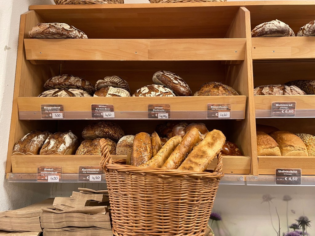 Unsere Biobäcker liefern uns feine Vollkornbrote. Das Blütenbrot kommt vom Genussbäcker aus Leutkirch. Einmal pro Woche werden wir mit glutenfreien Broten beliefert.